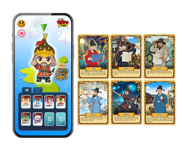 실물 카드에 스마트폰을 비추면 역사 속 위인이 실제로 등장하여 살아 움직이고, OX퀴즈, 히든 퀘스트, 카드 수집 등의 학습과 놀이를 결합한 교육 콘텐츠로아이들이 스스로 몰입하며 역사를 즐겁게 학습할 수 있도록 개발되었습니다.